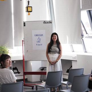 We were still stuck on the idea of how to stage the Visual Assembly. Would it be a performance, dance routine, mere lecture? We all agreed that we wanted to spice things up and do something unconventional. Suddenly, with only a couple days left to spare, Sofia came up with the idea of a wedding between Care and Curriculum. The values Mutual Aid and No Hierarchy would be the witnesses.